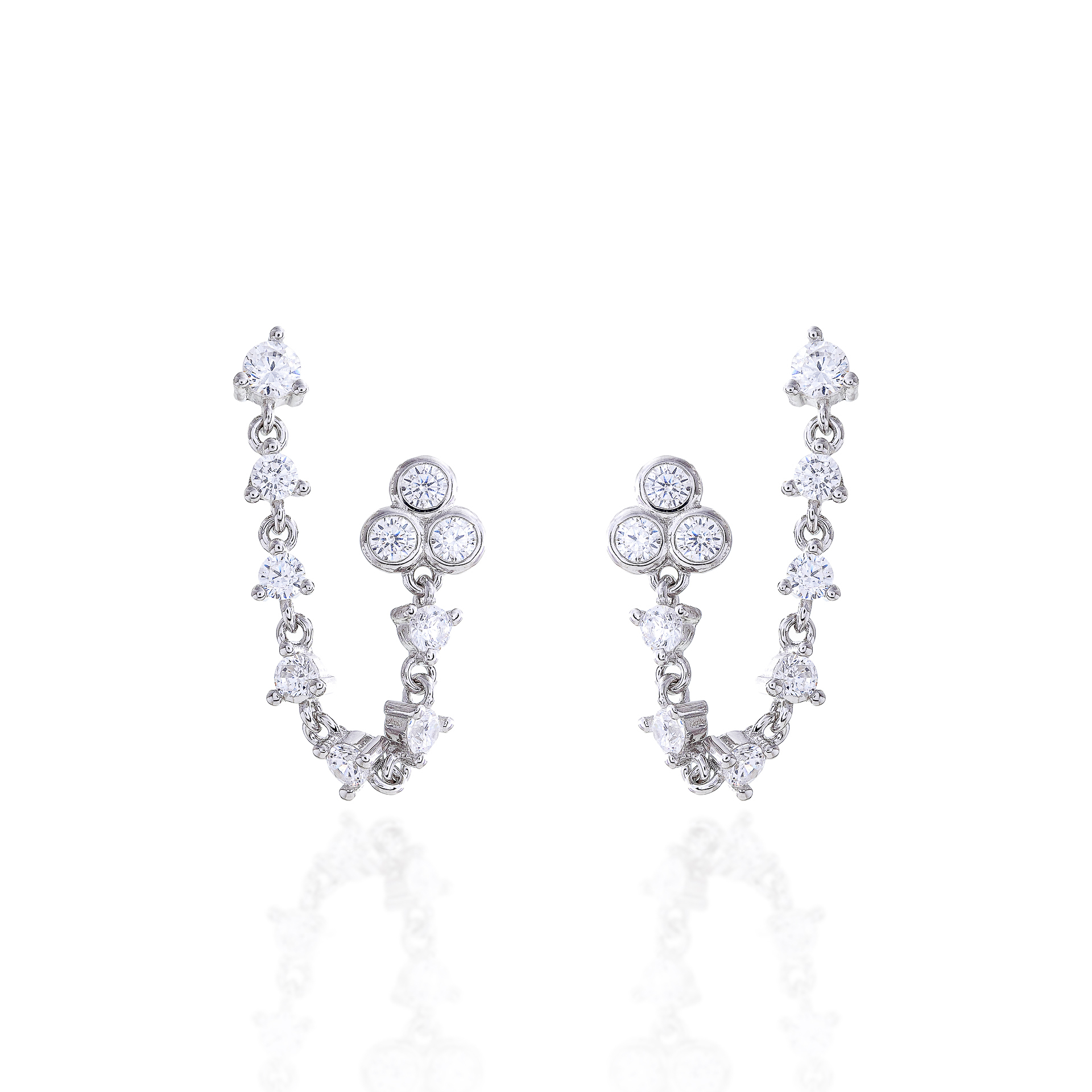 Brinco para dois furos na prata 925
