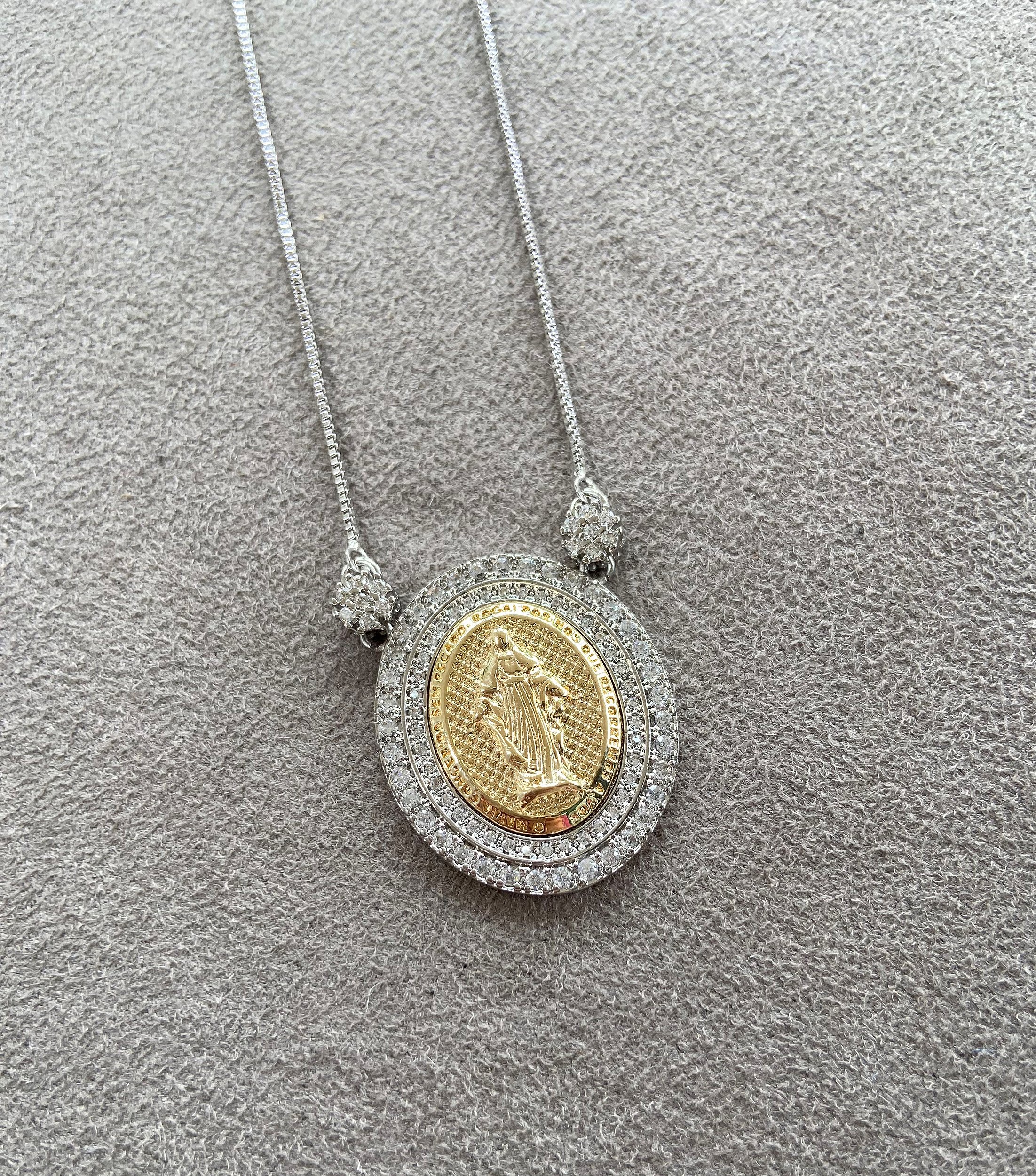 Colar de Nossa Senhora das Graças dourado e ródio branco