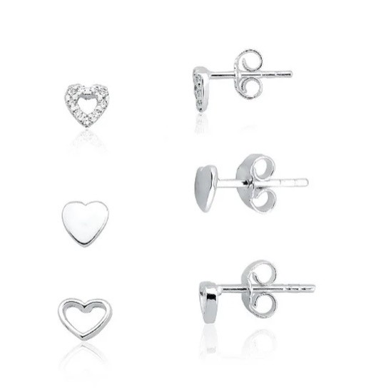 Trio de coração na prata